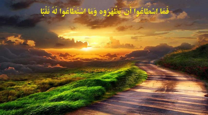 قوله تعالى:{ فَمَا اسْطَاعُوا أَنْ يَظْهَرُوهُ وَمَا اسْتَطَاعُوا لَهُ نَقْبًا} اسطاع واستطاع واحد، والظهور العلو والاستعلاء، والنقب الثقب، قال الراغب في المفردات،: النقب في الحائط والجلد كالثقب في الخشب انتهى وضمائر الجمع ليأجوج ومأجوج.