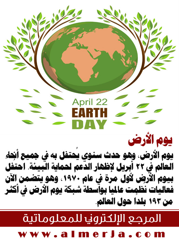 يوم الأرض يوم الأرض، وهو حدث سنوي يُحتفل به في جميع