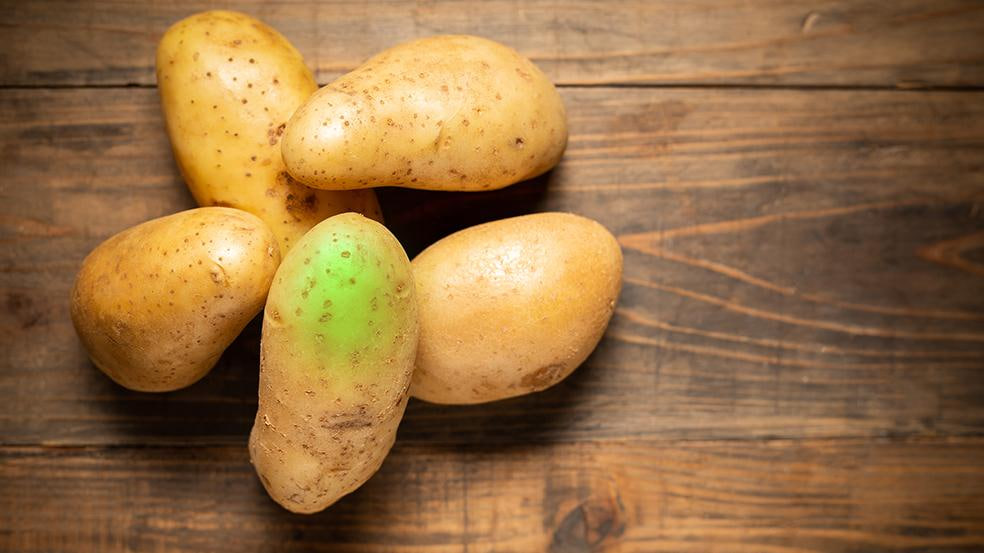 وجود اللون الاخضر في البطاطس دليل على وجود ماده سامة فيها تسمى " السولانين " لذلك يجب التخلص منها وعدم تناولها ..