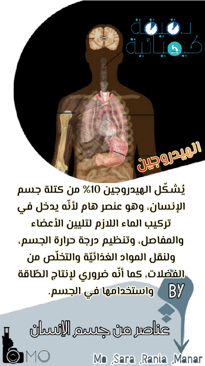 الهيدروجين في جسم الانسان ..