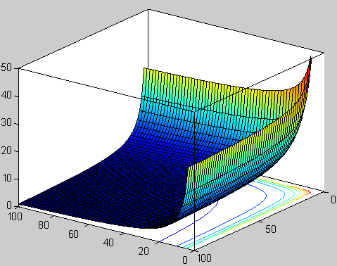 الرسم البياني لدالة بيتا لقيم موجبة لكل من x و y