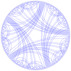 تمثيل للمثلث في ثلاثة أنواع مختلفة من الهندسة الرياضية. يظهر في الأعلى المثلث الكروي والذي يلاحظ في الهندسة الكروية، يظهر في الوسط مثلث القطع الزائد الذي يلاحظ في الهندسة القطع الزائد، وفي الأسفل يلاحظ المثلث التقليدي الذي يلاحظ في الهندسة الإقليدية.