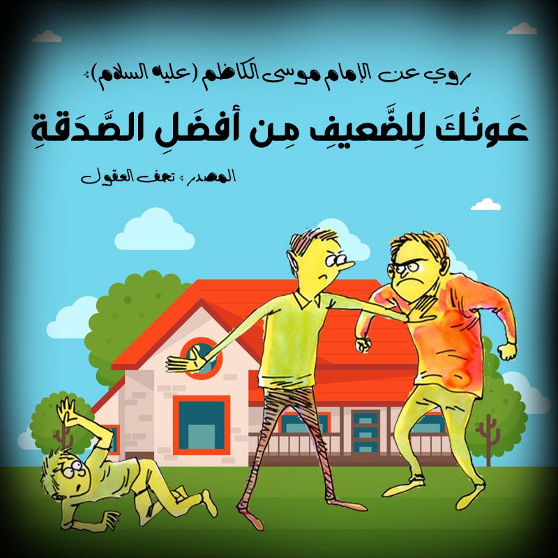 رُوِيَ عن الإمام موسى بن جعفر الكاظم ( عليه السلام ) أنهُ قَالَ : عَونُكَ لِلضَّعيفِ مِن أفضَلِ الصَّدَقةِ .