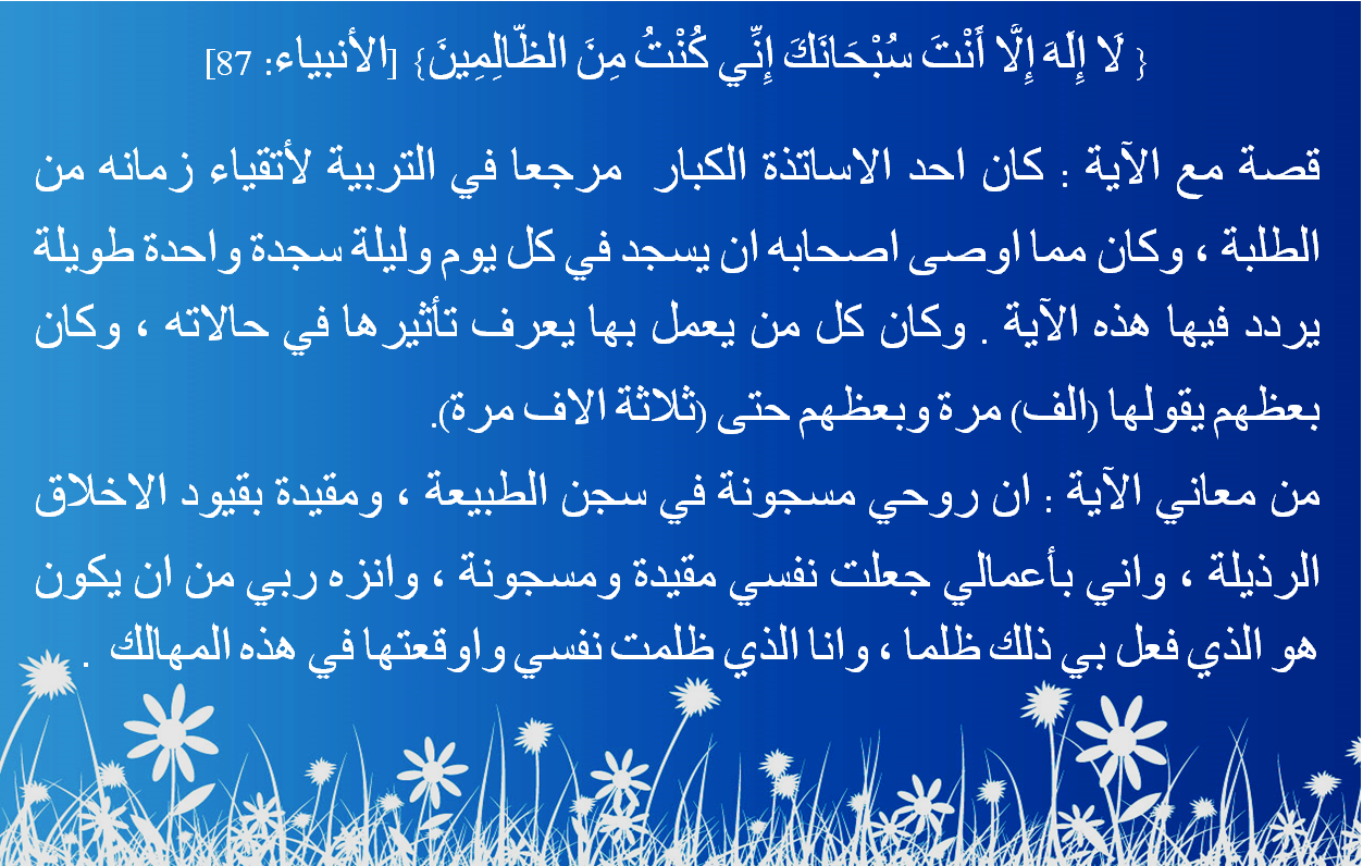 { لَا إِلَهَ إِلَّا أَنْتَ سُبْحَانَكَ إِنِّي كُنْتُ مِنَ الظَّالِمِينَ} [الأنبياء: 87]