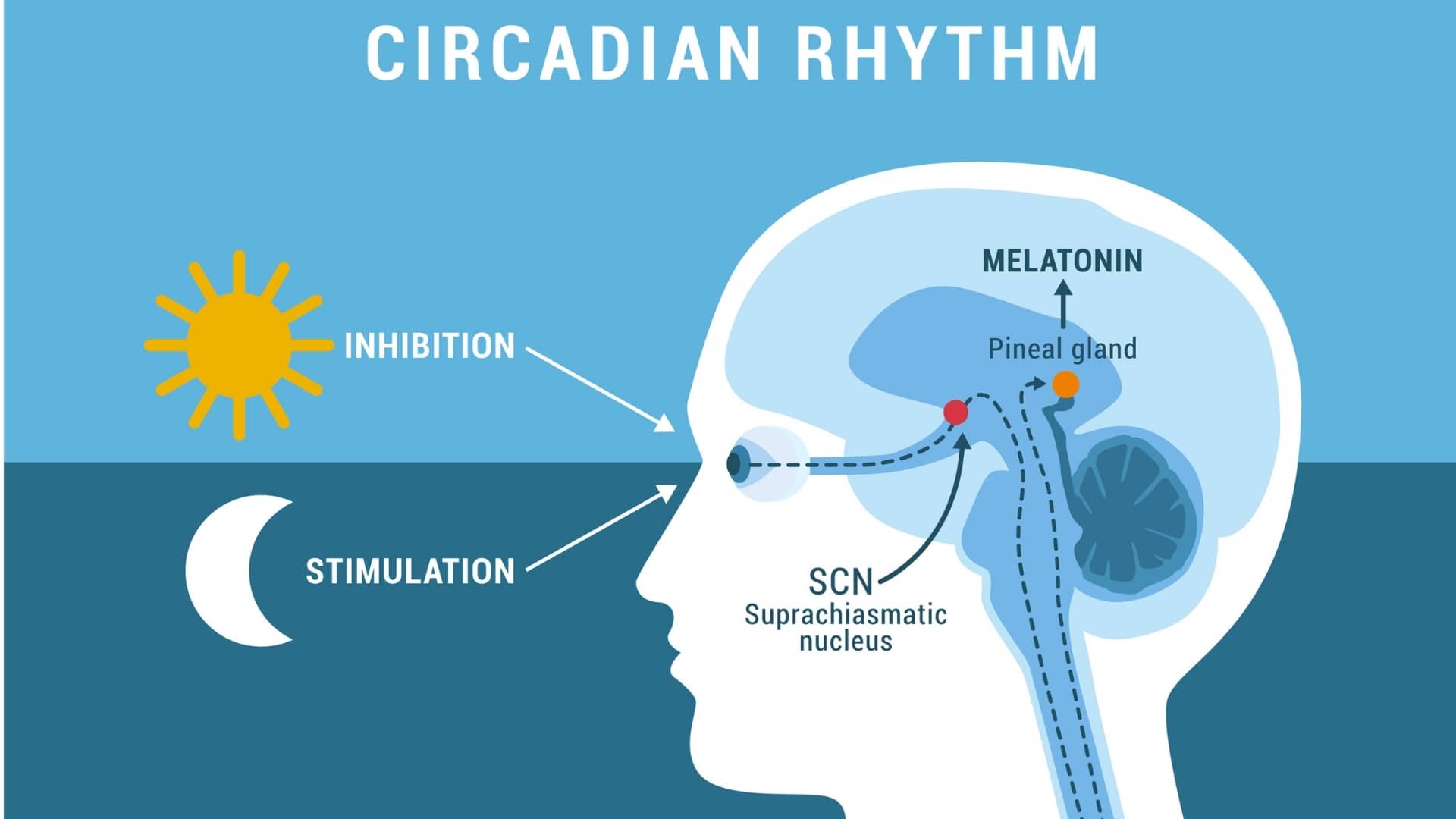 Circadian rhythms are 24-hour cycles that are part of the body’s internal clock, running in the background to carry out essential functions and processes. One of the most important and well-known circadian rhythms is the sleep-wake cycle. Different systems of the body follow circadian rhythms that are synchronized with a master clock in the brain. This master clock is directly influenced by environmental cues, especially light, which is why it is tied to the cycle of day and night.