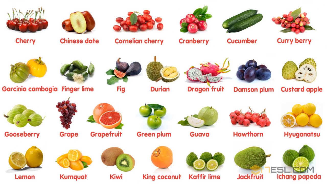 تعلم اللغة بشكل تدريجي يعني انك سوف تحتاج لتعلم المفردات البسيطة, و بعض ما نتعامل معه هي النباتات بشكل عام و الفواكه و الخضار بشكل خاص. لذلك عندما تتجه لحفظ المفردات, تعلم ما تحتاج استعماله في حياتك اليومية.