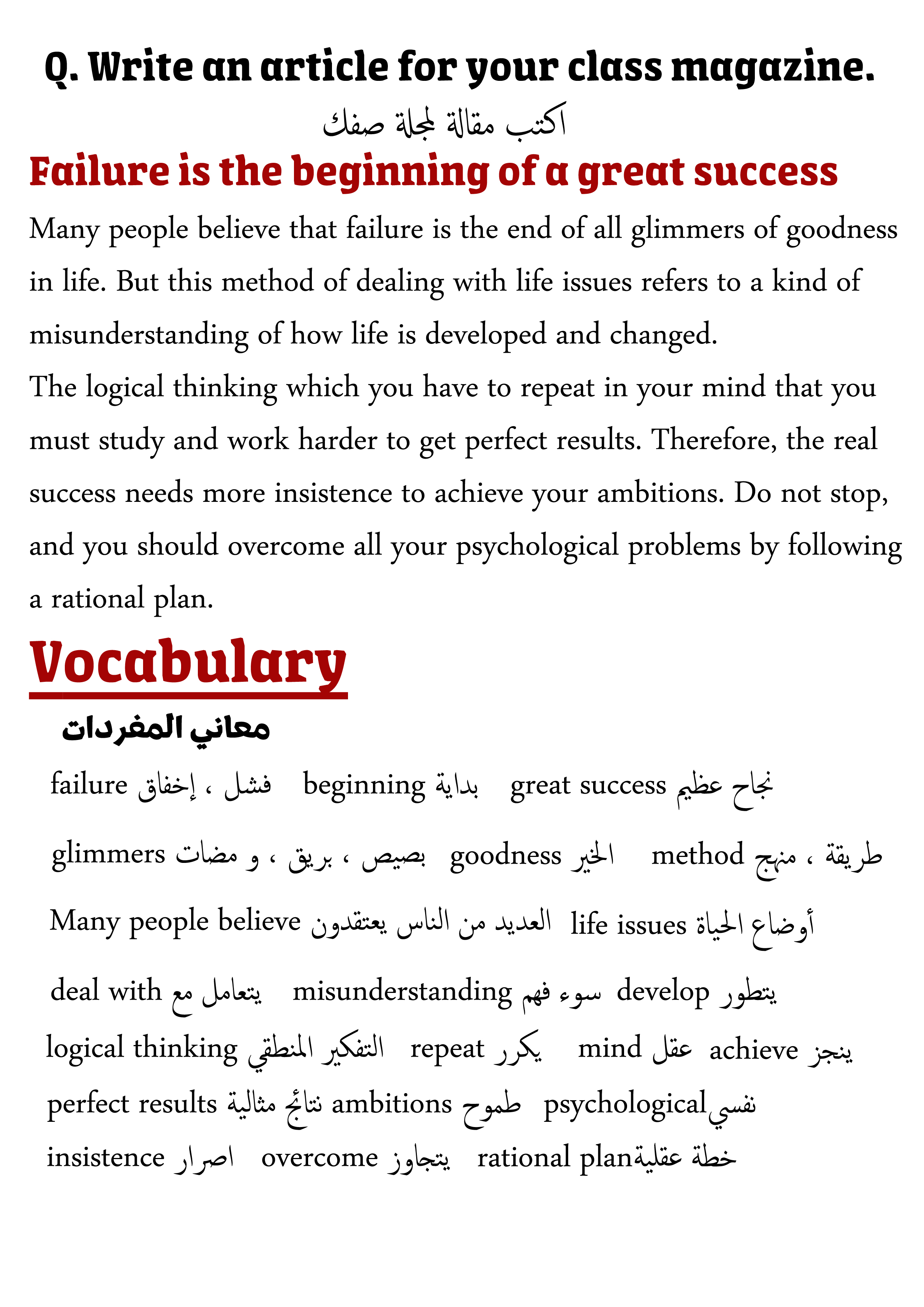 انشاء الوحدة السابعة - الرابع الاعدادي