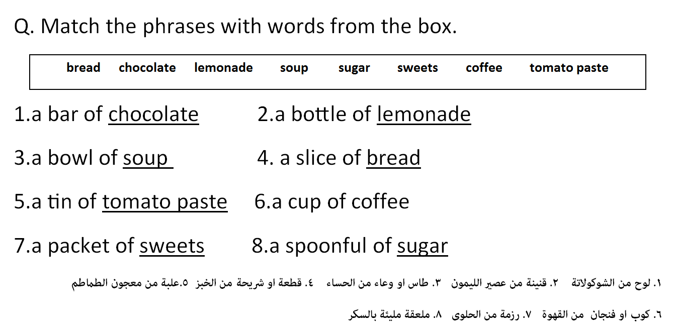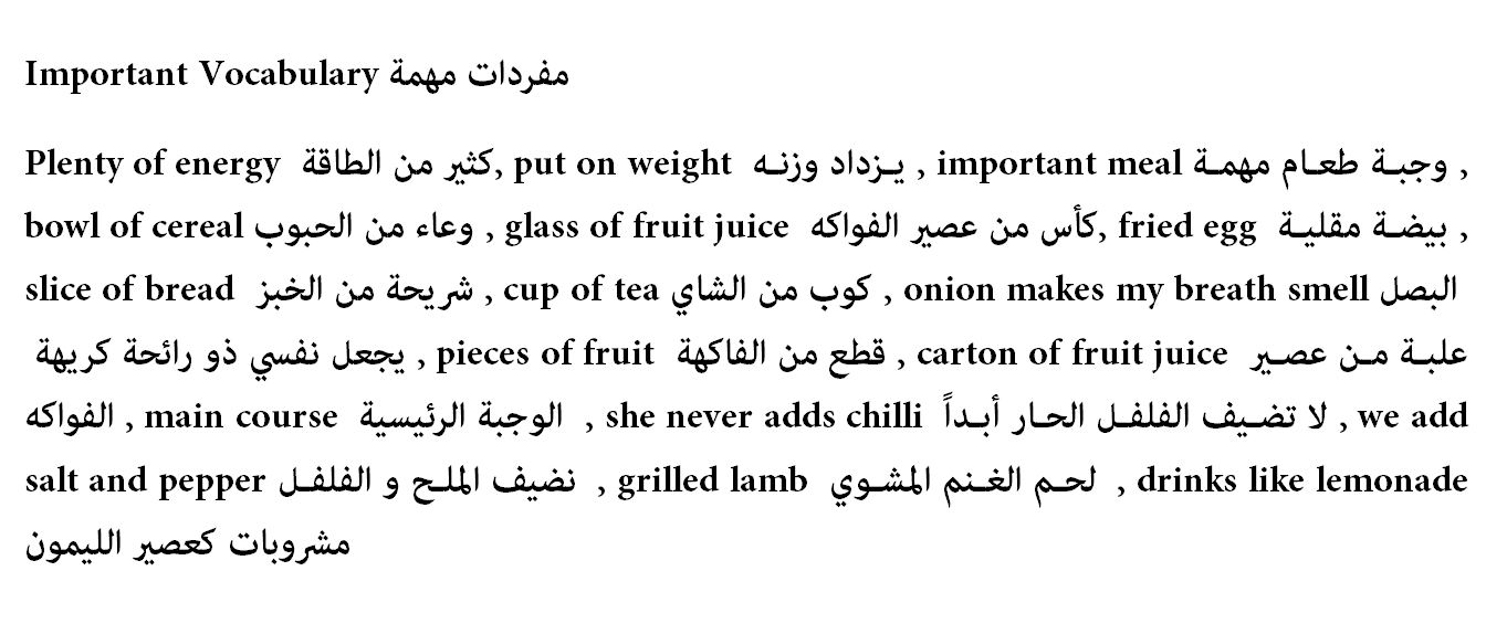 مفردات و تعابير مهمة تستخدم عند الكلام عن الطعام ... الوحدة الخامسة للصف الخامس الاعدادي