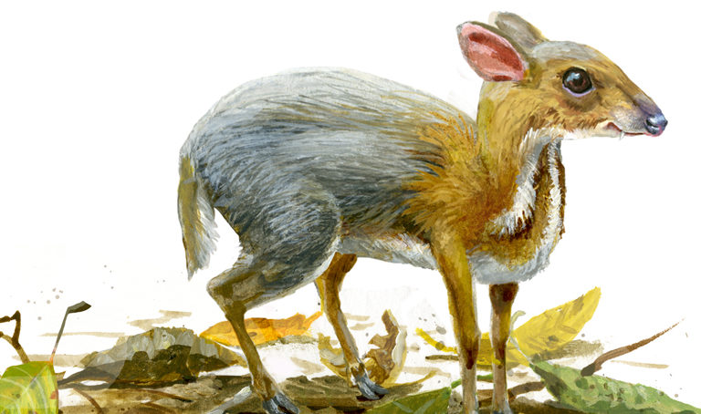 Besides the silver-backed chevrotain, wire snare poaching has pushed other endemic deer-like species to the brink of extinction, including the saola and the large-antlered muntjac.