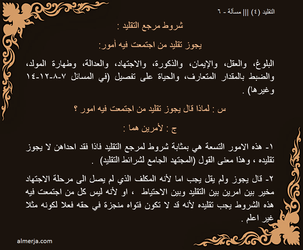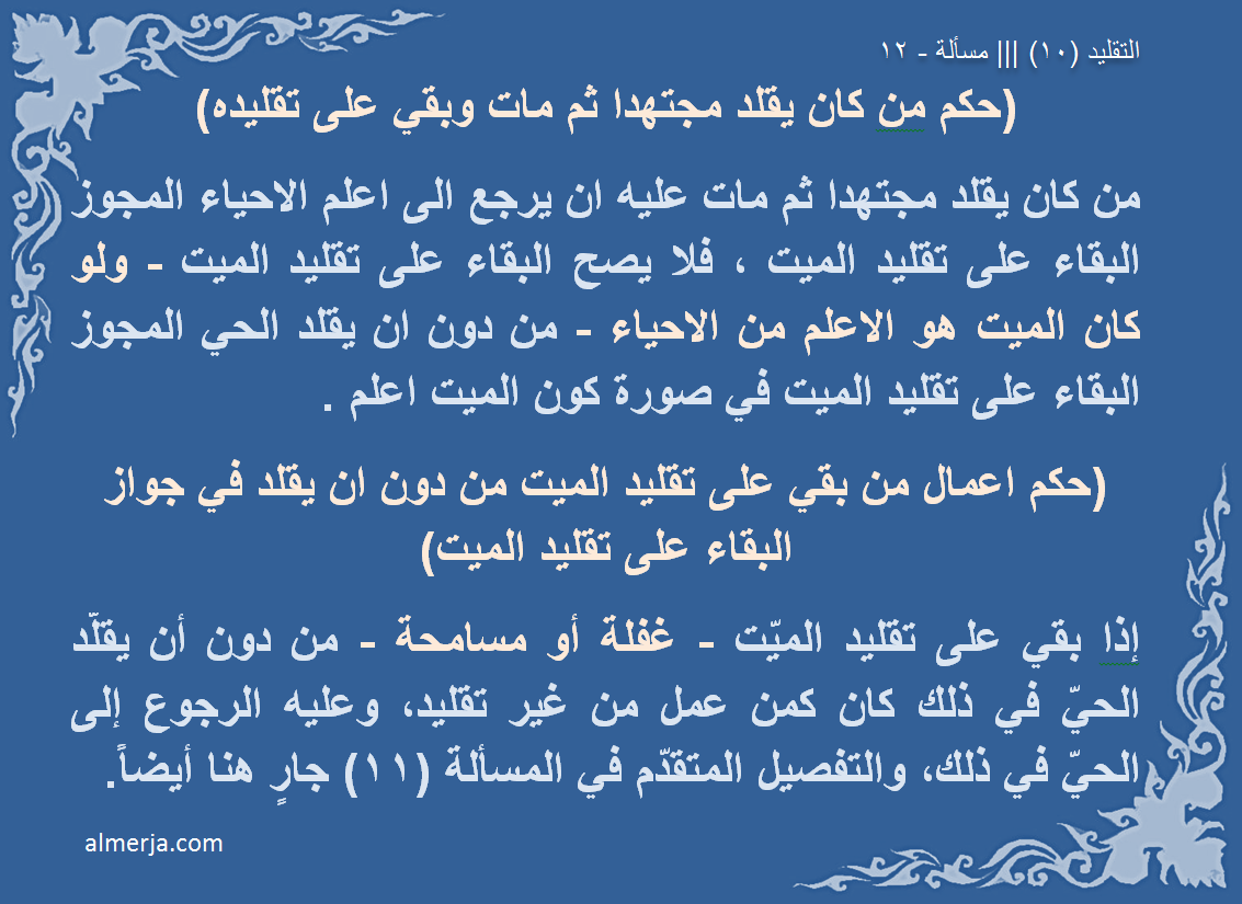 | سيدي الجليل انا اقلد المرجع (س) وتوفى هذا المرجع ، قام مقامه المرجع (ص) وكان هو الاعلم بين الاحياء حسب شهادة اهل الخبرة ، فقصدك هنا ان اذهب اليه وان اسأله في بقائي على تقليد المرجع (س) بأعتبار المرجع (س) المتوفى اعلم من (ص) هذا هو المعنى المقصود ام معنى اخر؟؟ | أعجبني |