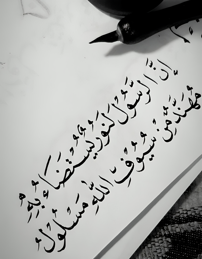 إِنَّ الرَسولَ لَنُورٌ يُستَضاءُ بِهِ *** مُهَنَّدٌ مِن سُيوفِ اللَهِ مَسلولُ