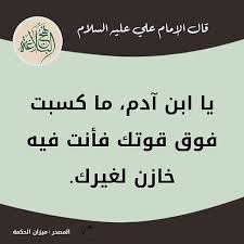 عن الإمام علي عليه السلام : يا بن آدم ، ما كسبت فوق قوتك فأنت فيه خازن لغيرك. نهج البلاغة: الحكمة 192 .