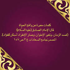 عن الاِمام الصادق (عليه السلام): فسد الزمان، وتغيّر الاخوان، وصار الانفراد أسكن للفؤاد .