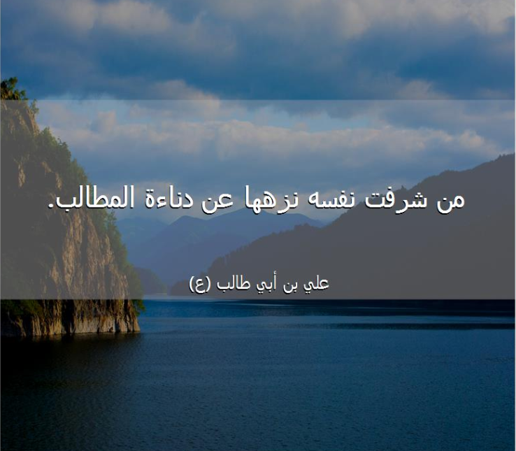 عن أمير المؤمنين عليه السلام : (من شرفت نفسه نزهها عن ذلة المطالب) غرر الحكم ودرر الكلم للآمدي ص669.