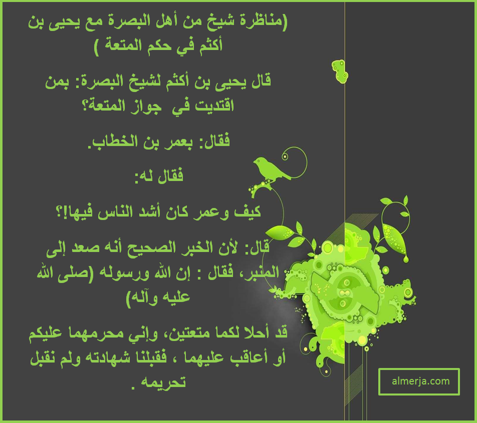 مناظرة شيخ من أهل البصرة مع يحيى بن أكثم في حكم المتعة