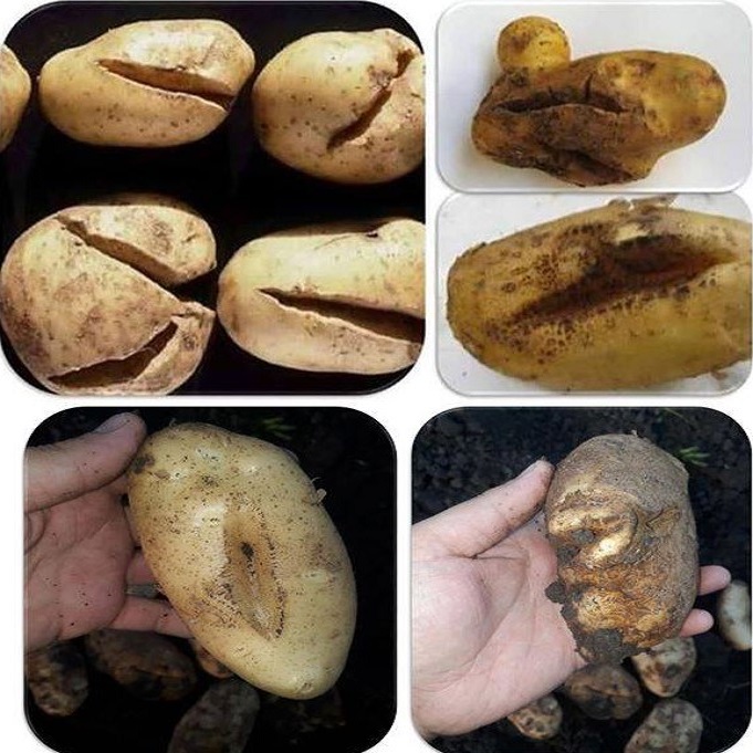 اسباب تشققات درنات البطاطس المتكونة: * اساسا صنف حساس