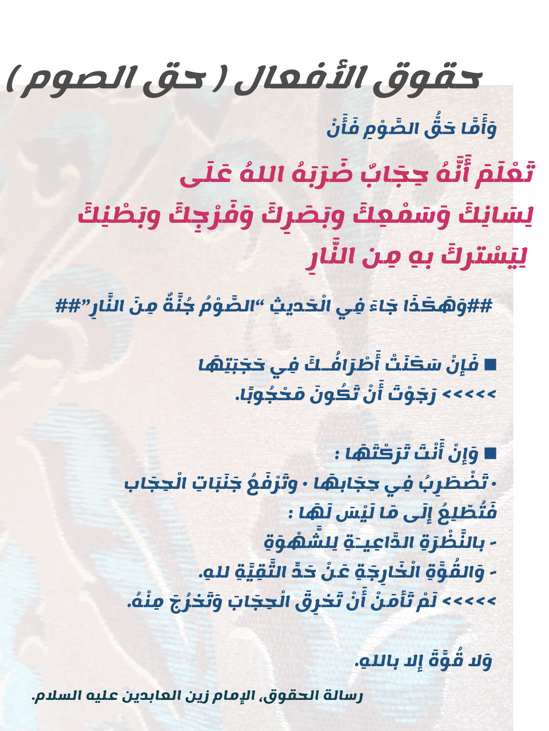 رسالة الحقوق لزين العابدين عليه السلام حق الصوم