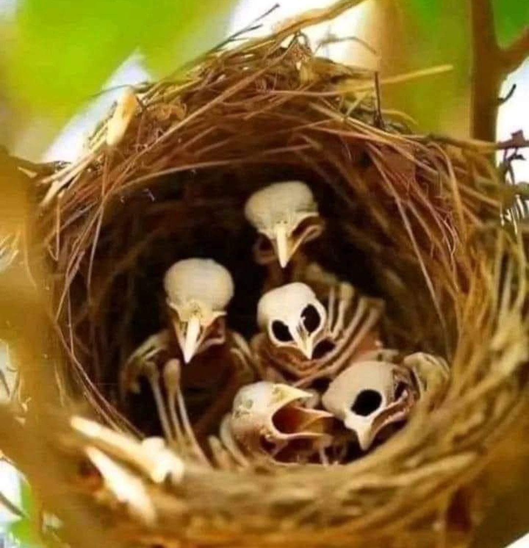 طيور ميته داخل عش ينتظرون امهم لتحضر لهم الطعام لكن