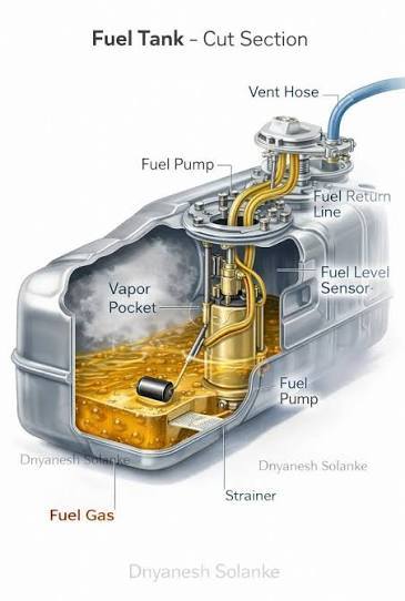 يعمل مقياس الوقود بآلية "المقاومة المتغيرة"؛ حيث تطفو عوامة بلاستيكية فوق سطح الوقود وتتصل بذراع معدني يتحرك صعوداً وهبوطاً. هندسياً، يتصل طرف الذراع الآخر بقطعة إلكترونية تسمى Potentiometer، والتي تُغير شدة التيار الكهربائي المار بناءً على زاوية الذراع. عندما يمتلئ الخزان، ترتفع العوامة لتقليل المقاومة، فيتدفق تيار قوي يحرك إبرة العداد نحو "Full". أما في السيارات الحديثة، فيقوم كمبيوتر السيارة (ECU) بمعالجة هذه الإشارة رقمياً لضمان استقرار القراءة ومنع تذبذب الإبرة أثناء الانعطاف أو الصعود،