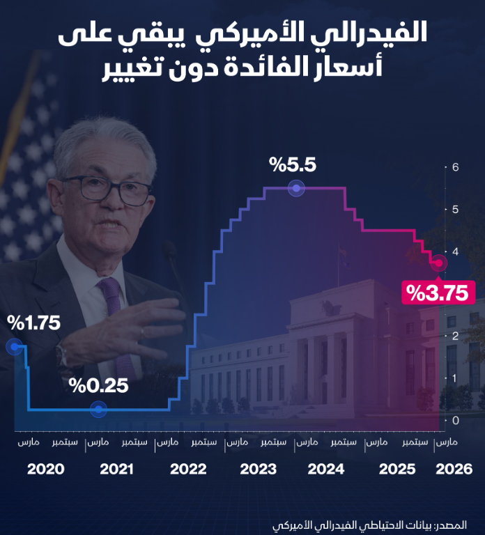 | أبرز المستجدات بعد قرار الفيدرالي: ــ وول ستريت تحت الضغط: "داو جونز" يتراجع بأكثر من 1% بينما اقتربت تراجعات S&P500 وناسداك من 0.8% ــ اشتعال النفط: خام برنت يقفز بنحو 4% عند مستوى 107 دولارات للبرميل، بعد تقارير عن هجوم إسرائيلي على منشأة غاز في "بوشهر" الإيرانية وتهديد طهران بالهجوم على منشآت نفطية بالمنطقة ــ أسعار الذهب الفوري تتراجع بنسبة 2.2% لتستقر عند 4,895.61 دولار للأونصة، رغم أجواء عدم اليقين. | أعجبني |