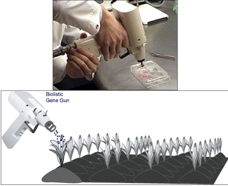 وسيلة تستعمل لدفع الجينات إلى داخل الخلايا أو أنوية الخلايا مثل المحاقن وتطلق المواد الوراثية المرسبة على سطوح معادن ثقيلة مثل الذهب والتنكستن بسرعة تصل إلى سرعة الصوت لتستقر في المادة الوراثية