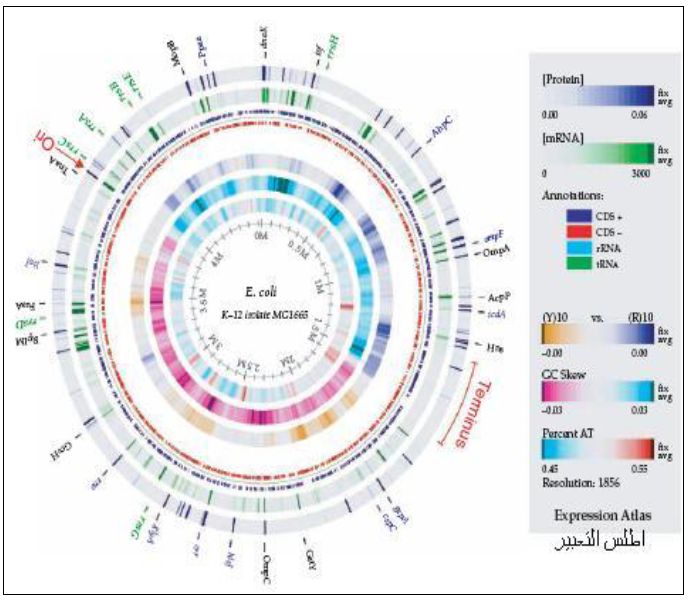 يكون بمثابة وسيلة للحصول على المعلومات حول التعبير الجيني للأنواع والشكل التالي يوضح أطلس التعبير الجيني لإحدى سلالات Escherichia coli