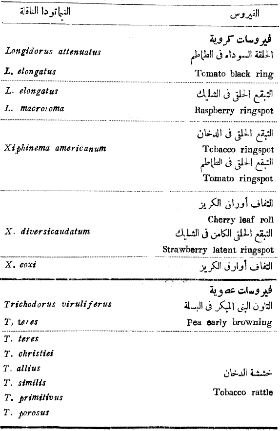 بعض الفيروسات وبعض أنواع النيماتودا الناقلة لها