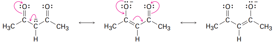 Just as there is a C=O bond to the left of the lone pair, there is a second C=O bond to the right. Thus, we can draw a total of three resonance structures for the 2,4-pentanedione anion.
