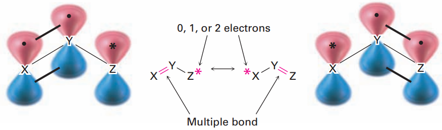The atoms X, Y, and Z in the general structure might be C, N, O, P, S, or others, and the asterisk (*) might mean that the p orbital on atom Z is vacant, that it contains a single electron, or that it contains a lone pair of electrons.