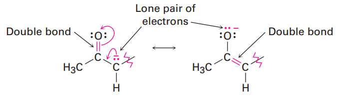 Look back at the resonance forms of the acetate ion and the acetone anion shown in the previous section. The pattern seen there is a common one that leads to a useful technique for drawing resonance forms. In general, any three atoms grouping with a p orbital on each atom has two resonance forms: