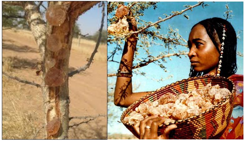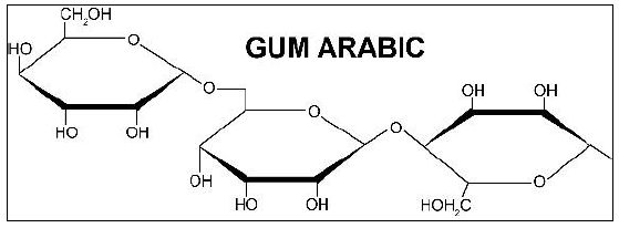 تستعمل بكثرة في الصناعات الغذائية ويفضل لكون لونه شاحب إلى برتقالي بني، ويستعمل الصمغ كمادة مستحلبة ويمنع تبلور السكريات في الحلويات. ويستخلص الصمغ من أنواع أشجار جنس Acacia وتختلف مكوناته وفق المصدر المستخلص منها وتمثل السودان أكثر البلدان المنتجة للصمغ العربي.