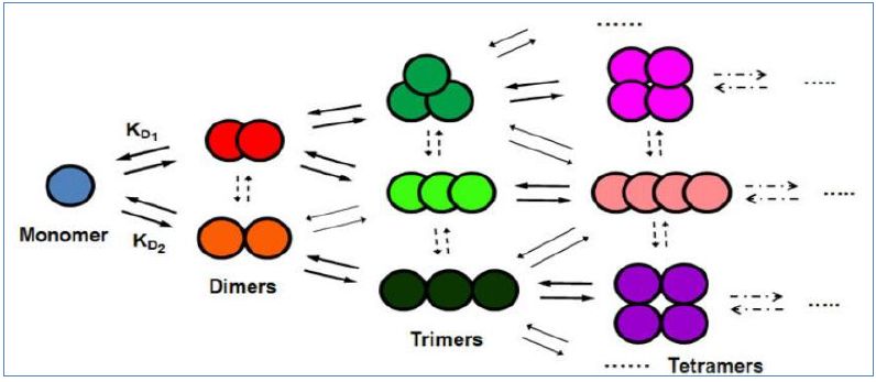 وعملية تكوين الوحدات الصغيرة Oligomerization يعني جمع الوحدات المفردة الى متعددة وهي عملية مهمة جدا لاداء وظائف كثيرة ، وقد كشف عنها باستعمال X-ray او NMR وغيرها . والارتباطات قد تكون تداخلات كهربائية مستقرة او تداخلات كارهة للماء او اواصر هيدروجينية .