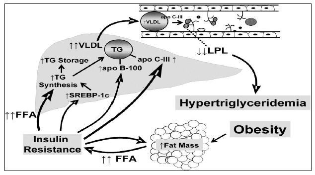 حالة تراكم Lipoproteins الغنية بالكليسريدات الثلاثية التي تعد المصادر الرئيسة للطاقة التي تنتج في الامعاء من الاغذية وهي جزيئات كارهة للماء ترتبط بالبروتينات الدهنية لغرض نقلها . وترتبط الكلسيريدات الثلاثية مع صنف البروتينات الدهنية التي يطلق عليها Chylomicrons او VLDL لذلك تزداد الحالة عند زيادة هذا الصنف من البروتينات الدهنية الناتجة من تناول كميات كبيرة من الدهون والسكريات . ولها اسباب وراثية اذ تكثر في العوائل التي تنتشر فيها Hyperlipidemia نتيجة لنقص انزيم Lipoprotein Lipase . وقد تكون الحالة ثانوية لظروف اخرى مثل زيادة استهلاك الكحول او عدم السيطرة على داء السكري النوع الاول والثاني ، وكذلك في حالات الفشل الكلوي وامراض الغدد الصم مثل Hyperthyroidism ، Cushing Syndrome ، Acromegaly او تناول بعض الادوية . لها اعراض مختلفة وفي الحالات الشديدة تؤدي الى تضخم الكبد والطحال ويمكن ان تؤدي الى تصلب الشرايين وتكون السبب في 1 - 4 % من حالات التهاب البنكرياس ، ولكن