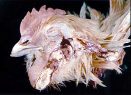 شكل (2) كوليرا الدجاج - تضخم الدلاية في ديوك البداري عند الإصابة بميكروب multocida) C.J.RANDALL Pasteurella)