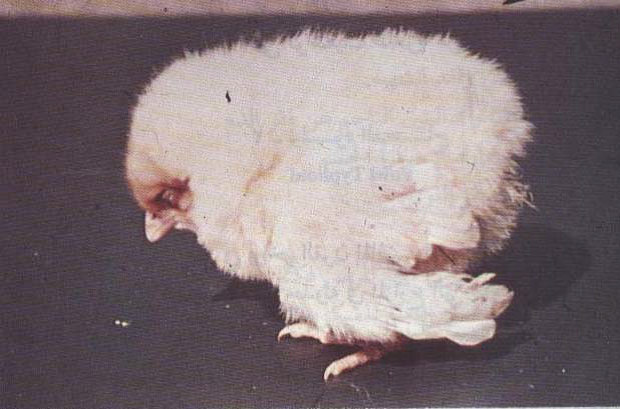شكل (3) منظر عام لصوص مريض بالإسهال الأبيض ويلاحظ عليه علامات الإعياء والاكتئاب وارتخاء الجناح