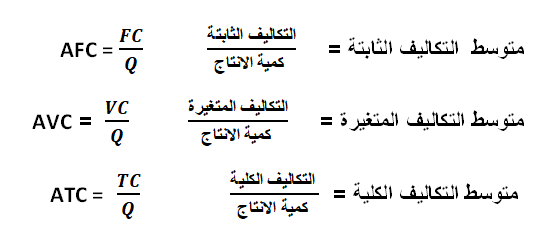 متوسط التكلفة هو مقدار ما تتحمله كل وحدة منتجة من أنواع التكاليف الثلاثة ، فهي اذاً :