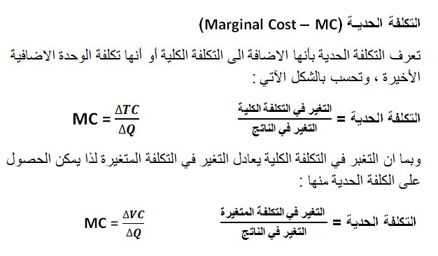 ومن خلال ما تقدم فإن التكاليف الكلية (TC) Total Cost في الأجل القصير ما هي الا مجموع التكاليف الثابتة والتكاليف المتغيرة ، أي أن :