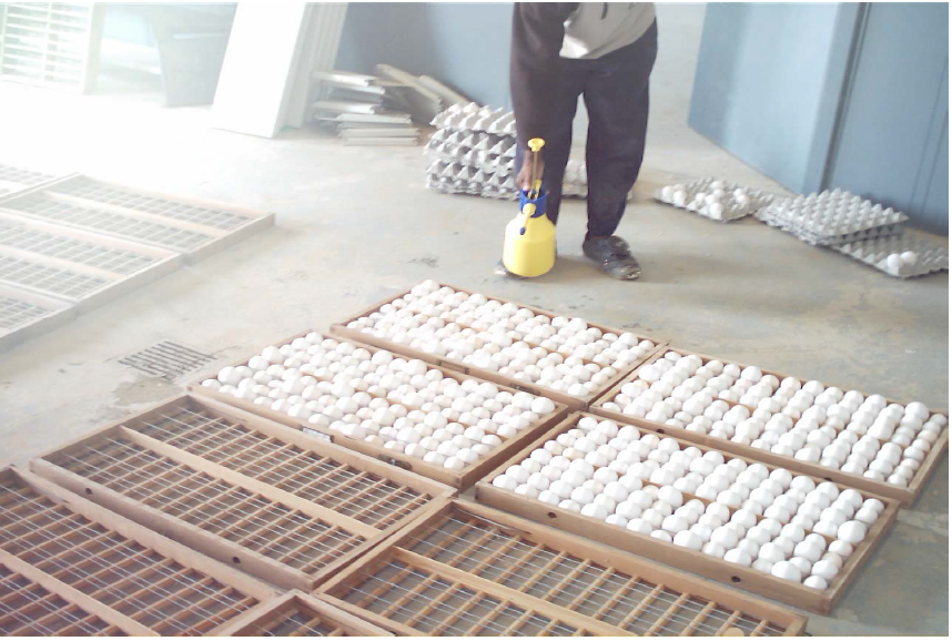 3- رش البيض - باستعمال مطهر بنفس التركيز السابق شكل رقم ( 11 ).