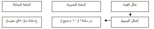 وحسب الشكل البسيط للقيمة فإن التعبير عن قيمة سلعة ما يتم بواسطة سلعة أخرى معادلة لها ؛ كأن نقول مثلاً :