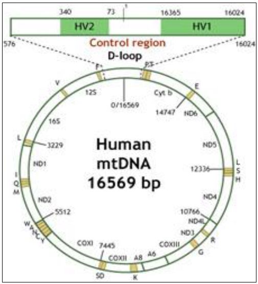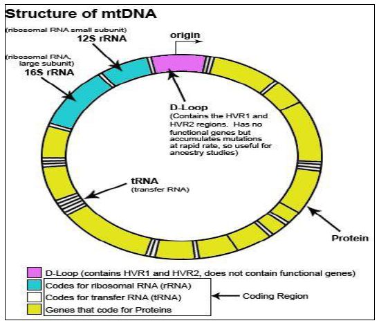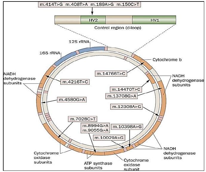 يكون معدل الطفرات في mtDNA عاليا جدا نظرا لغياب Protective Chromatin وكذلك عدم كفاءة انظمة اصلاح DNA وتعرضها الدائم لجذور الاوكسجين ، ويكون من نوع Haplotype Group الخالية من التأشب ويستورث من الام . كل هذه جعلته سهل الحصول والدراسة ويستعمل لدراسة التطور والحالات الجنائية .