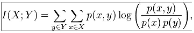 دالة احصائية لقياس اعتماد مؤشر ما على مؤشر اخر ، قديما كانت تسمى Transformation وهي اوسع من قياس معامل الارتباط (Correlation Coefficient ( r. اذا كان المؤشران مستقلة تكون قيمة MI صفر والحالة العكس ، فالمتغايرين X,Y والاحتمالية (pXY (X,Y فان (MI(X,Y