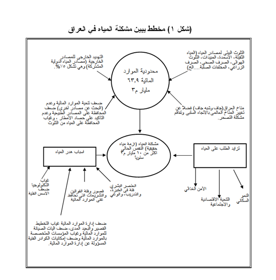 من تحليل (شكل1). تتوضح أبعاد مشكلة المياه، وتفاقم تداعياتها وتعقد وتداخل الأسباب والعوامل المؤثرة فيها. وسوف نتناولها وعلى وفق تأثيرها وهي كما يأتي: