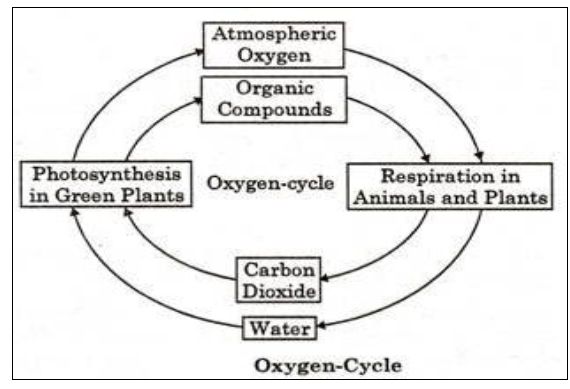 دورة الأوكسجين في الطبيعة بين المكونات الحيوية واللاحيوية وتكون هذه الدورة مرتبطة ارتباطاً وثيقاً مع دورة الكاربون والماء ففي التنفس تأخذ الأحياء الأوكسجين لتطرحه مرتبطاً بالكاربون على شكل ثنائي أوكسيد الكاربون الذي يدخل إلى الدورة في عملية التخليق الضوئي اذ ينطلق الأوكسجين ثانية إلى البيئة بعد شطر جزيئة الماء.