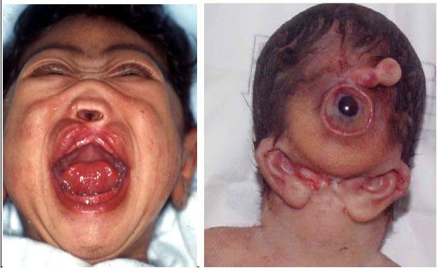 معالجة الحالة تكون خاصة بكل حالة في حالة بقاء المولود حيا ومنها التدخل الجراحي والتغذية الملائمة واستعمال وسائل السمع والبصر والمساعدة في تعلم الكلام . وعادة فان 80 % من الاطفال يموتون في السنة الاولى او بعد الولادة مباشرة .