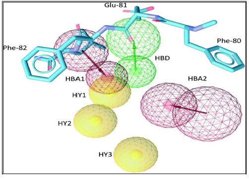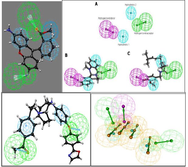 اما 3D Pharmacophore فهو يمثل التوزيع الثلاثي الذي يحدد الموقع المكاني والذي يعبر عنه بمدى المسافات او الزوايا او المستويات Planes . والحاسوب يبني Pharmacophore كما موضح في الاتي :