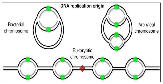 منطقة التضاعف الموجودة في جزيئة طويلة من DNA وتظهر الاشرطة مفتوحة تشبه العين تحيطها المناطق غير المتضاعفة وتكون تركيب يشبه θ Structure .