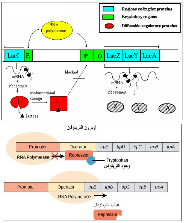 أحد طرق تنظيم الفعاليات الحيوية على مستوى انتساخ المعلومات الوراثية ، اذ تكون الجينات المسئولة عن تنظيم البروتين الكابح بعض الأحيان غير فعال ويرتبط بجزيئة صغيرة تسمى مساعد الكابح Co – repressor لينشط ويصبح قادراً للارتباط بالجين المشغل Operator مانعاً الجينات التي بعده من الانتساخ وتوقف الفعالية المعتمدة على الأنزيم الناتج والآلية موضحة في الشكل الآتي :