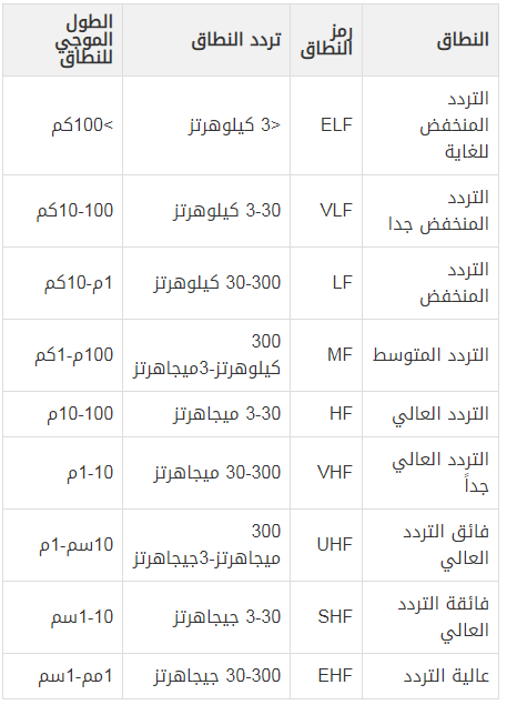 بحسب الإدارة الوطنية للإتصالات والمعلومات فإن موجات الراديو تقع ضمن 9 نطاقات رئيسية هي: