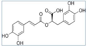 ينتشر المركب في العديد من أفراد العائلة النباتية الشفوية Lamiaceae، تستعمل الأعشاب الحاوية عليه في الطبخ . يوجد في نبات أكليل الجبل Rosmarinus officinalis، الزعتر، النعناع الفلفلي والميرمية Salvia officinalis وغيرها من النباتات ، وهو مركب مزدوج لحامض الكافائيك ، مسحوقه احمر- برتقالي قليل الذوبان في الماء ولكن يذوب في معظم المذيبات العضوية له قابلية مضادة للأكسدة قوية . وله تأثيرات طبية واسعة منها خفض سكر الدم وتستعمل النباتات الحاوية عليه ضد اضطرابات الجهاز الهضمي وإصابات الجلد وتستعمل البلدان المختلفة النباتات الحاوية عليه لأغراض علاجية كثيرة ومختلفة ومنها كمضاد لسموم الأفاعي. وبما انه من مضادات الأكسدة فهو يعمل ضد الأمراض الناشئة عن وجود مركبات الأوكسجين الفعالة ROS ويحضر في الآونة الأخيرة من مزارع الخلايا النباتية للأغراض الدوائية .