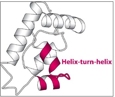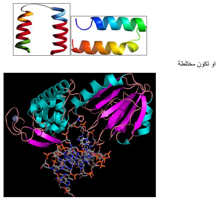 وقد تظهر في هذا المستوى تراكيب ثانوية واضحة مرتبة بشكل دومينات ذات وظائف خاصة او قطيفات تركيبية مثل Helix-Turn-Helix .